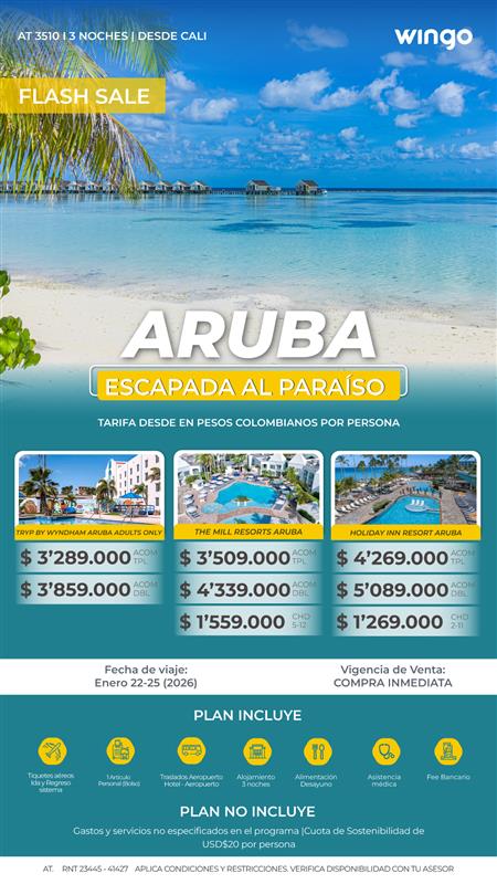 FLASH SALE WINGO 3N ARUBA DESDE CALI