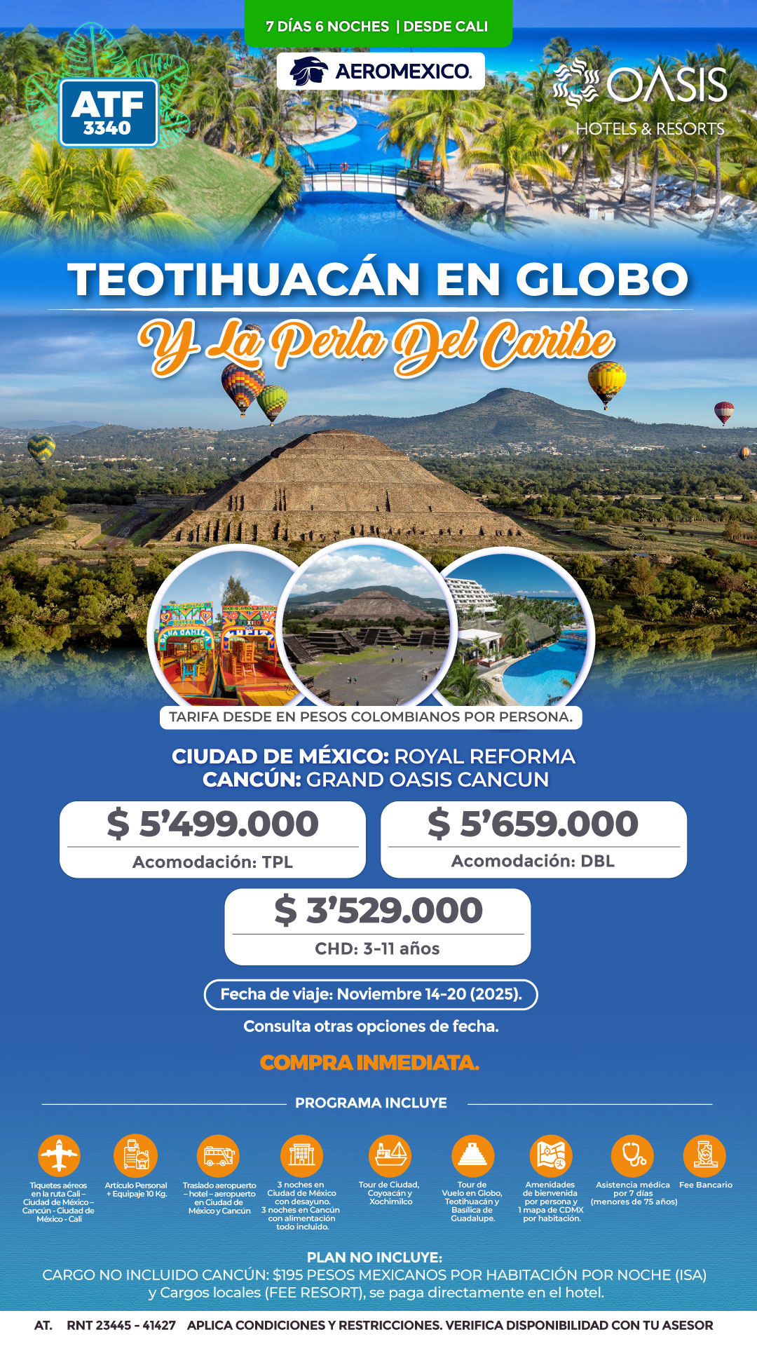 - Tiquetes aéreos en la ruta Cali – Ciudad de México – Cancún – Ciudad de México – Cali.