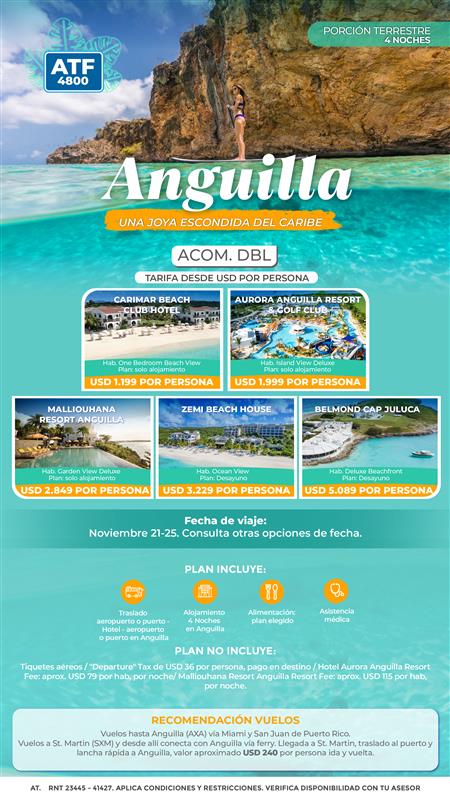- Alojamiento 4 Noches en Anguilla