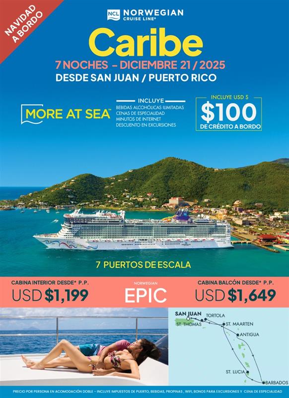 - CREDITO A BORDO, USD 100 por persona para compras a bordo