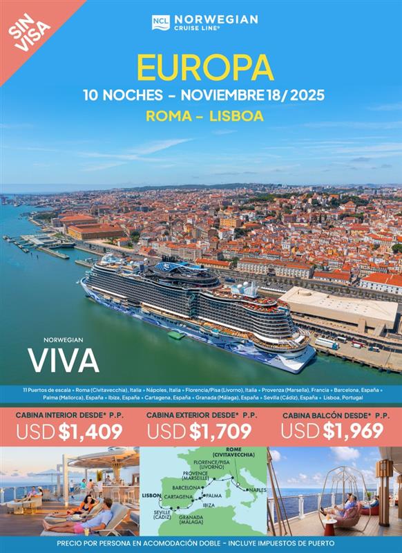 - CREDITO A BORDO, de USD 25 a USD 50 por persona para compras a bordo