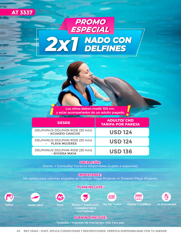 PROMO ESPECIAL 2×1 NADO CON DELFINES CANCÚN Y RIVIERA MAYA