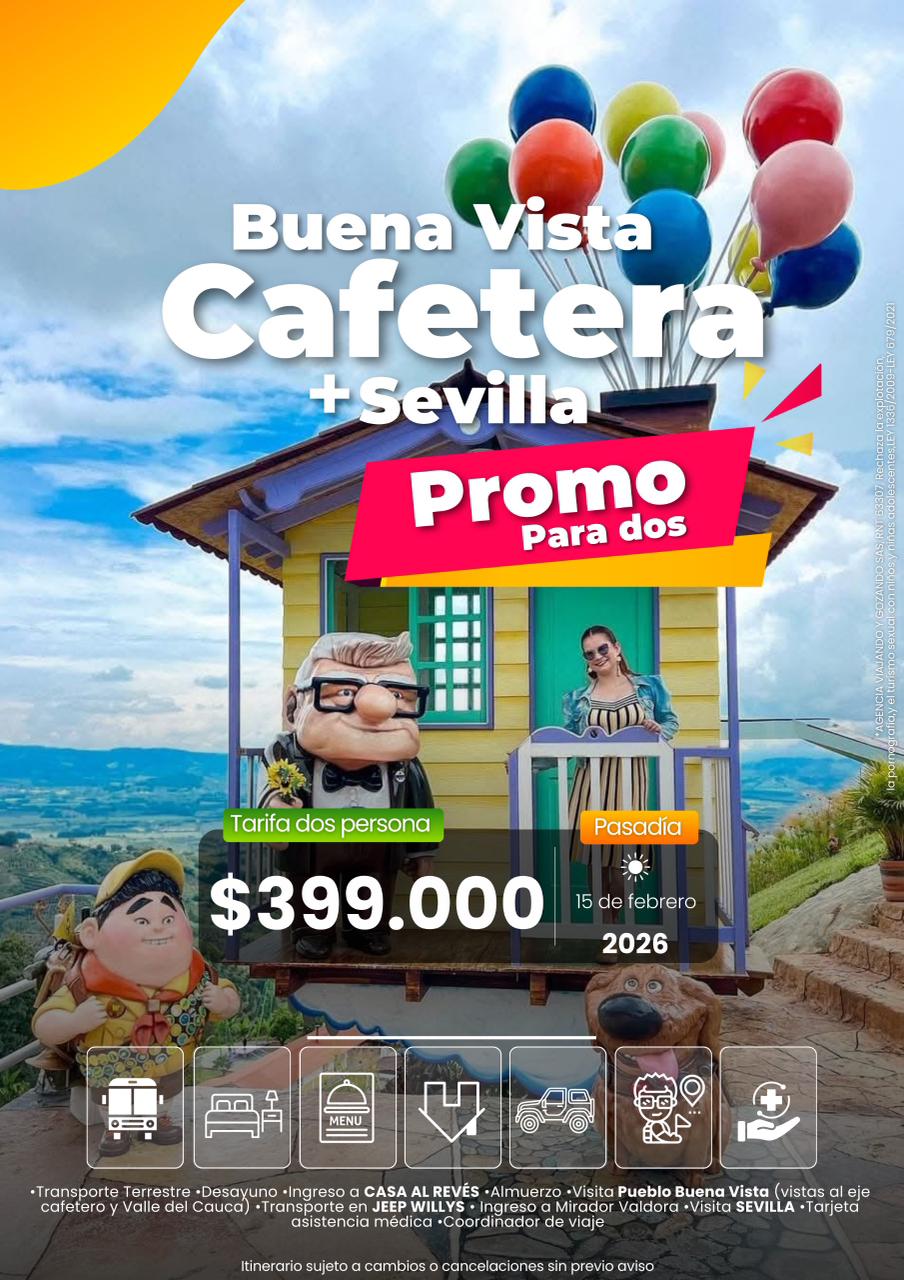 - Visita Pueblo Buena Vista (vistas al eje cafetero y Valle del Cauca)